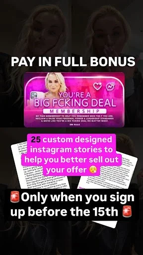 When you pay in full for YOURE A BIG FCKING DEAL MEMBERSHIP before January 15th you will get:
